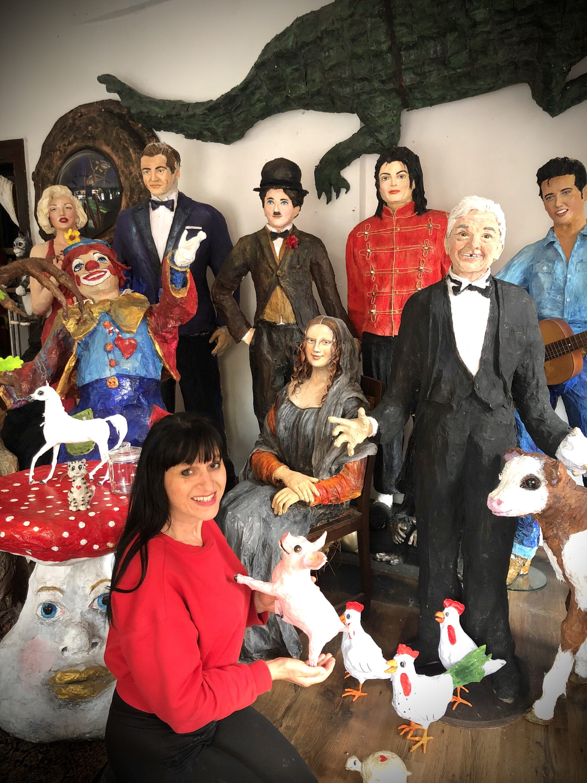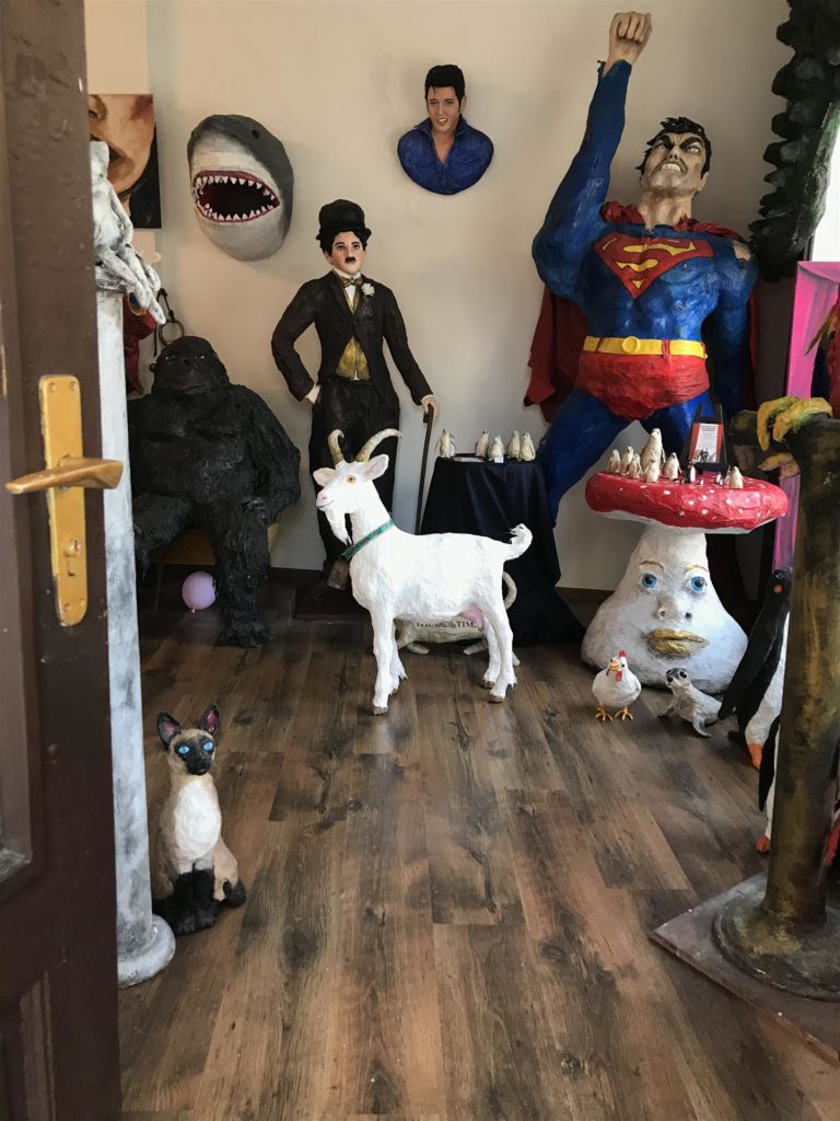 Im Pappmaschee Universum Atelier (Theaterstraße 20 in 90762 Fürth/Bayern) finden Sie lebensgroße Nachbildungen von Marilyn Monroe, Charly Chaplin und weiteren bekannten Persönlichkeiten. Außerdem ist hier eine große Vielfalt an Tieren aus Pappmaschee, so z.B. Erdmännchen, Hunde, Katzen, oder Eichhörnchen. Für Ballett- oder Musikfreunde gibt es Balletttänzer und Balletttänzerinnen, Notenschlüsselmännchen zum aufstellen oder Noten aus Pappmaschee. Und vieles mehr, lassen Sie sich überraschen! Kommen Sie und blicken Sie durch die großen Schaufensterscheiben des Ateliers.